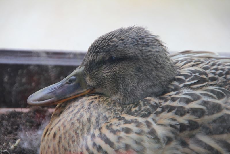 Zum dritten Male brütet eine Wildente bei uns im 1. Stock in einem Blumenkasten. Vier Blumenkästen hatte sie dieses Jahr zur Auswahl und hat auch in allen vieren Probe gesessen, bis sie sich dann für den überm Haupteingang entschieden hat.